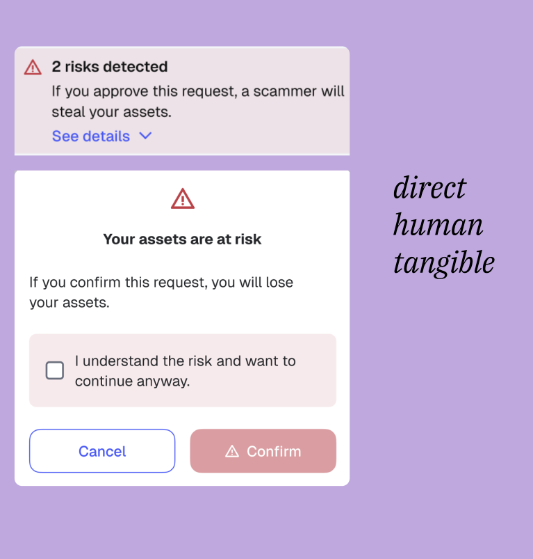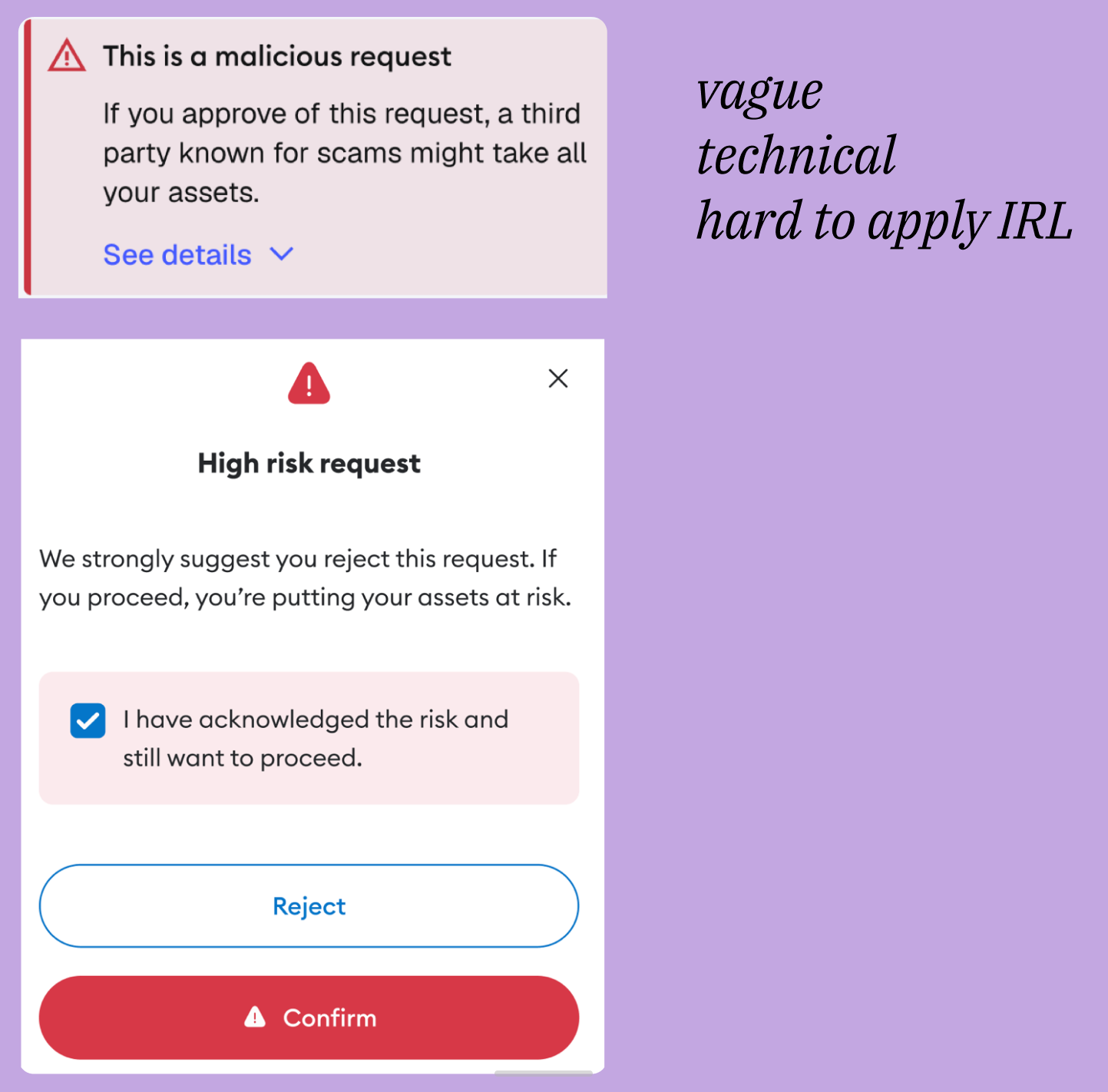 Up until this point, users moved frictionlessly through the flow, which meant scammers could walk them right into danger.